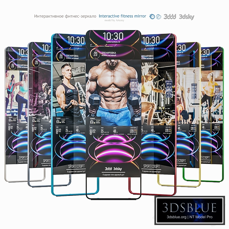 Fiture Interactive Fitness Mirror The new Fiture fitness mirror introduces Motion Engine technology. The functionality of the device lies in the fact that a virtual trainer with artificial intelligence is displayed on the screen, which conducts training sessions with the user in real time, like a real fitness trainer. The mirror can connect to LTE networks. In terms of specifications, the Fiture smart fitness mirror is equipped with a customizable wide-angle sensor that improves image quality by 40% in low light conditions and provides a 144° viewing angle. The mirror can record video in 2K resolution at 30 frames per second. As for the hardware platform, the device is based on an eight-core AI processor with a performance of 3 Tops. Thanks to this, the mirror can recognize the movements of the human body, determining whether they correspond to those provided by the training. > Models at origin > No groups > Normals are not inverted > X-form done > Textures and materials have correct names, without Cyrillic > No extra geometry In the archive: 3dsMax 2020 \ 2017 - V-Ray 3dsMax 2020 \ 2017- Corona Renderer Export files: FBX.2009 \ Vray+Corona RECOMMENDED: “Those who work in V-Ray versions lower than 3.1, be careful, in the materials in the BRDF section there is Microfaset GTR ( GGX ), if your version is older than 3.1, then the BRDF field will be empty. Choose Blinn, Phong or Ward - whatever suits you best." If the CORONA version is higher than 1.4: "For Corona render, it is recommended to set the version to at least 1.5, since the glossiness of materials is adjusted with PBR in mind." Happy renderings!