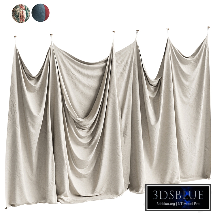 Wall drapery in three versions Dimensions: 4150mm x 2950(h)mm The TurboSmooth modifier is not collapsed. You can adjust the degree of anti-aliasing if necessary (in the viewport - 0 iterations, in the renderer - 1 iteration) wall decor / mid-century / mid-century / vintage / drapery / folds / fabric / linen / photo booth / tapestry _________________ The preview renders were made in Corona 9. CoronaLegacyMtl Materials. For Corona render, it is recommended to install version no lower than 1.5, since the glossiness of materials is configured taking PBR into account. Vray materials are obtained using Vray-converter. If you're using a V-Ray version earlier than 3.1, be careful: the BRDF section in your materials will show Microfaset GTR (GGX). If your version is older than 3.1, the BRDF field will be empty. Choose Blinn, Phong, or Ward—whichever is more convenient for you. Archive: max2016 Corona max2016 V-Ray fbx (Corona, V-Ray) units of measurement: mm polys: 362,712 / verts: 184,012 (entire scene) 119,168 / verts: 60,446 (one drapery) Textures and materials have logical names. Texturing UnwrapUVW