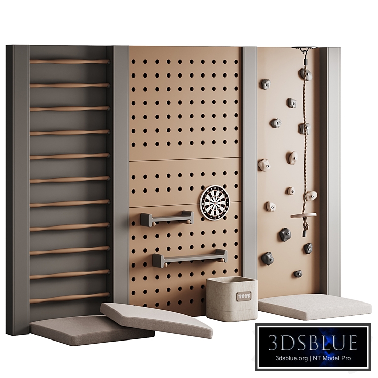 Children's playground for home. Ladder panel, rope, climbing panel, toy basket, darts. Nurms Subdivision is used on some elements for smoothing. Archive contains Max 2017 and FBX Overall dimensions 4300 mm x 3000 mm Polygons 83388 Vertices 88168 Corona version: 4 For normal operation, it is recommended to install Corona version not lower than 1.5.