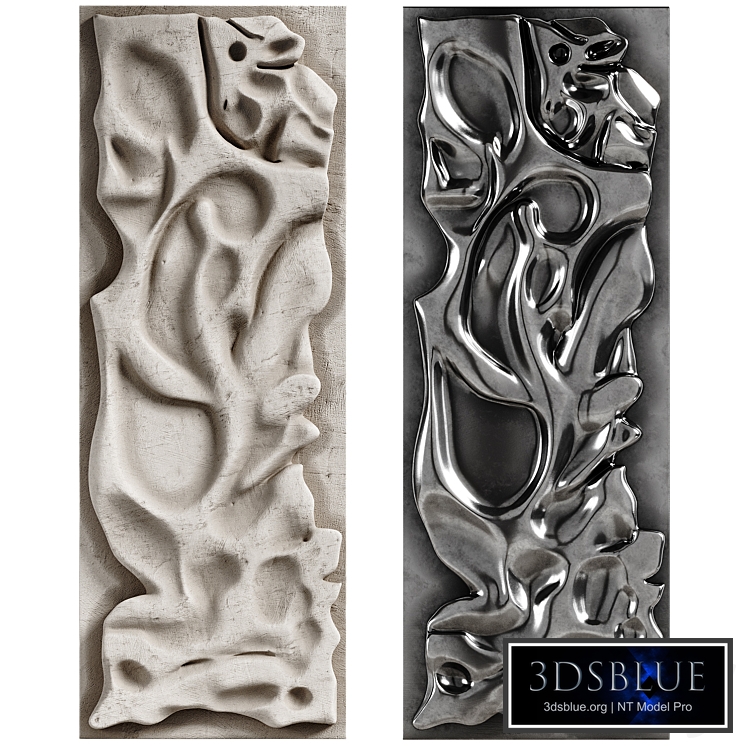 A decorative panel of smooth bionic form. Available in four versions: - in light stone - in the dark stone - with brass coating - with black metal coating Modeling under turbosmooth Designed for close angles. Renders are made in Corona Render 9. Corona Legacy Mtl. "For Corona Render: it is recommended to install version not lower than 1.5, since the glossiness of materials is configured taking into account PBR."