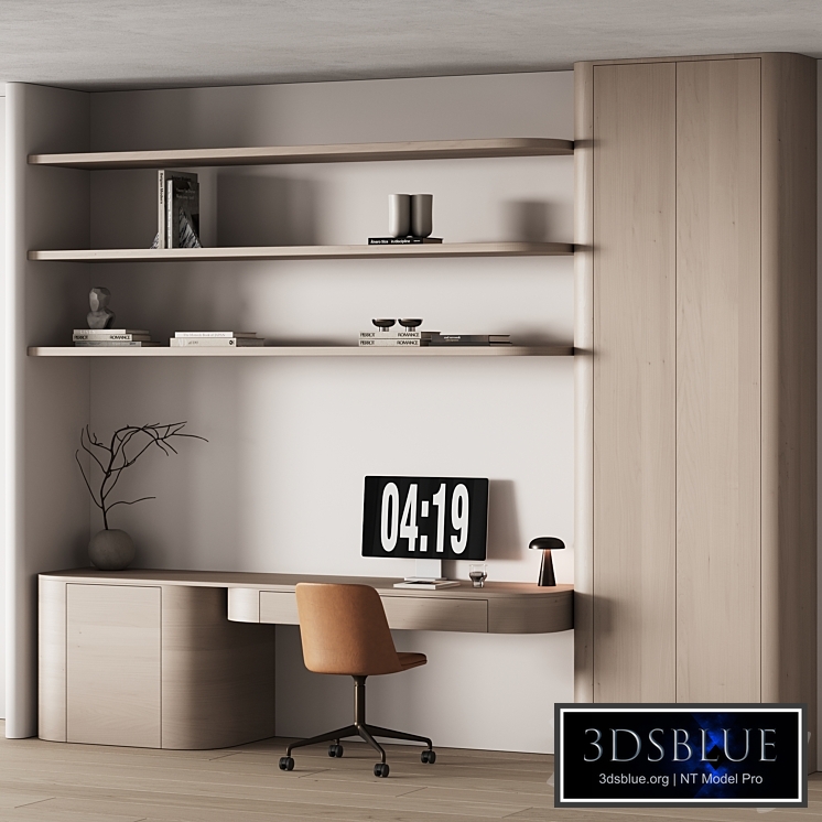 ╳ The model uses CoronaLegacyMtl. The model is made in Corona 10, but tested and 100% correctly renders in Corona 2 and higher ╳ —————— 3D model: work area, work chair and decor. Also suitable for hotels and inns. The model is logically grouped, the dimensions are easy to edit. The model consists of: desk, chair, books, table lamp, vase with a branch, notebook, glass of water, sculpture Dimensions: h = 300 cm, w = 370 cm, d = 60 cm Also in my profile you can find other various decorative sets, dishes, lighting, modern kitchens and other models for filling the interior, as well as TV walls, wall panels, bathroom furniture and other ready-made solutions for your projects :) Suitable for use in interiors in the styles of modern / minimalism / Scandinavian / Japandi / wabi sabi / Nordic / organic / bio / modern ————————————— All models, textures and materials are named logically and in accordance with the objects. All items have UVW mapping. —————————————