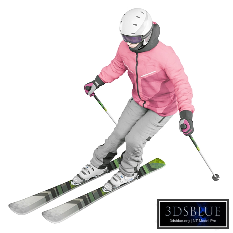 The model is a single mesh with one material and five textures — Color (8K, JPG), Reflect (4K, JPG), Glossiness (4K, JPG), Height (4K, PNG), Opasity (for goggles, 4K, JPG). It is easy to merge the model into your scene without getting confused by the many textures and materials. The face and boots are modeled only in their visible parts. Also all files contain two spheres with alternative materials. You can copy the main model and apply these two materials to it. You can see how the color variations look in one of the preview images. VRay version 3.6 Corona version 1.6 After importing the FBX, make sure all black and white maps are applied in gamma 1.0 (or other non-color mode depending on the application) Collection with the same skiers: http://3dsky.org/collection/shared/5369488 Collection with winter activities: http://3dsky.org/collection/shared/5369514