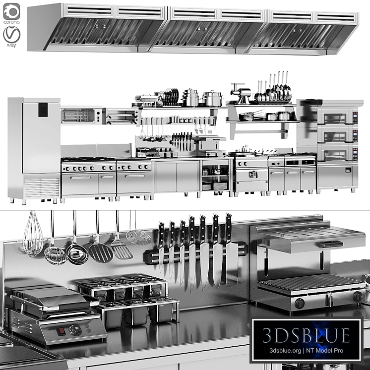 A set of equipment for cafes and restaurants. FBX+OBJ export files. Deck oven Apache E2K2P Tecnoinox TSP1 Toaster Bertos S900 SG9F6PS FG Gas Stove Bertos C Model 9P204 Cooking Kettle Bertos SG9CP40 Gas Pasta Cooker Gas deep fryer Bertos 9GL20 20M BF Electric stove Bertos E9PQ4 FE Refrigerated cabinet GN11-PULSE Chicken grill ATESY 21M Sirman Mobile Pro 11g Salamander Grill Panini Grill Hopert