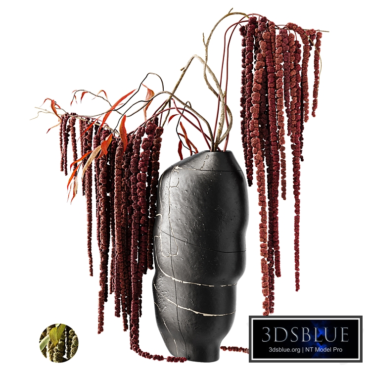 Amaranth of two types (green and burgundy) in a Gordon Baldwin vase https://anthonyshawcollection.org/gordon-baldwin/ The export file is missing the Coronamultimap map, which produces color variations in the amaranth. A material with this map can be obtained from the Material Library. Materials used: CoronaLegacyMtl Corona 9