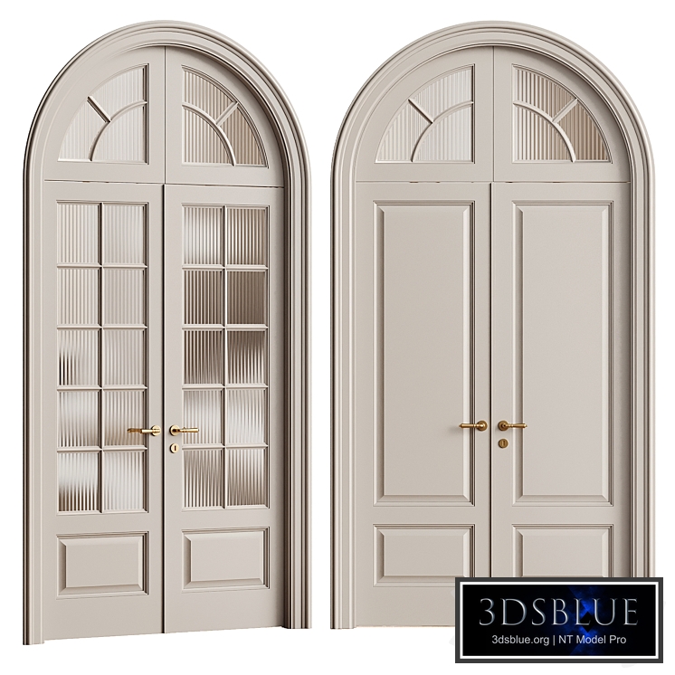 Arched classic door - fluted glass The door can be opened from 0 to 90 degrees. The pivot point is already set. Compatible with 3ds Max 2017 and later versions. Rendered using Corona and V-Ray engines. Includes export to OBJ format.