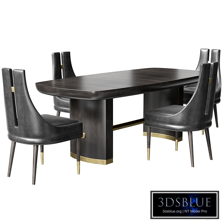 Arteriors Pembroke Crowley Dining Fashioned with a rounded, rectangular top and a pedestal base in rich, sable oak veneer, the Pembroke extending dining table expresses a modernity that harmonizes with any interior. The ideal balance of masculine and feminine, a sleek slit detail mimics an alluring open-backed dress. Soft black leather upholstery is enhanced with polished antique brass joinery. Poised on slim, ebony beech wood legs tipped in brass. Leather will vary. https://www.arteriorshome.com/pembroke-dining-table-5760 https://www.arteriorshome.com/crowley-dining-chair-fri16 DIMENSIONS W215 L102 H79cm DIMENSIONS W61 L59 H102cm Polys 537200 Vert 463293 (Format .fbx, .obj)