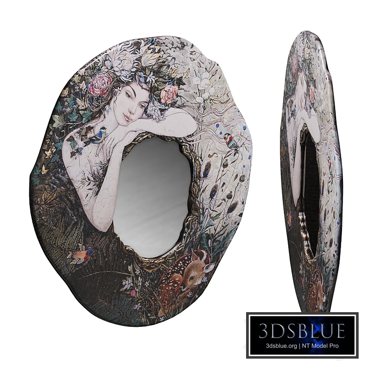 Author's mirror Forest Mirror in a handmade frame in Art Deco style from craftswoman InnaMarata (Details about the product and the author follow the link https://vk.com/@inna.marata-zerkala-innamarata ) Format: 3Ds Max 2018 Export: FBX, OBJ, MAT Render: Corona (5) Polys: 3260 Verts: 1632 Units: Millimeters Dimension: 1322 x 25 x 1450 Textures Formats: 4096*4096 Libraries of scenes and materials are saved in Corona and V-Ray, the materials are named correctly, in Latin. All objects have their own scan maps. In 3ds Max scenes, TurboSmooth is applied to objects in the rendering visibility mode. Enjoy using it!