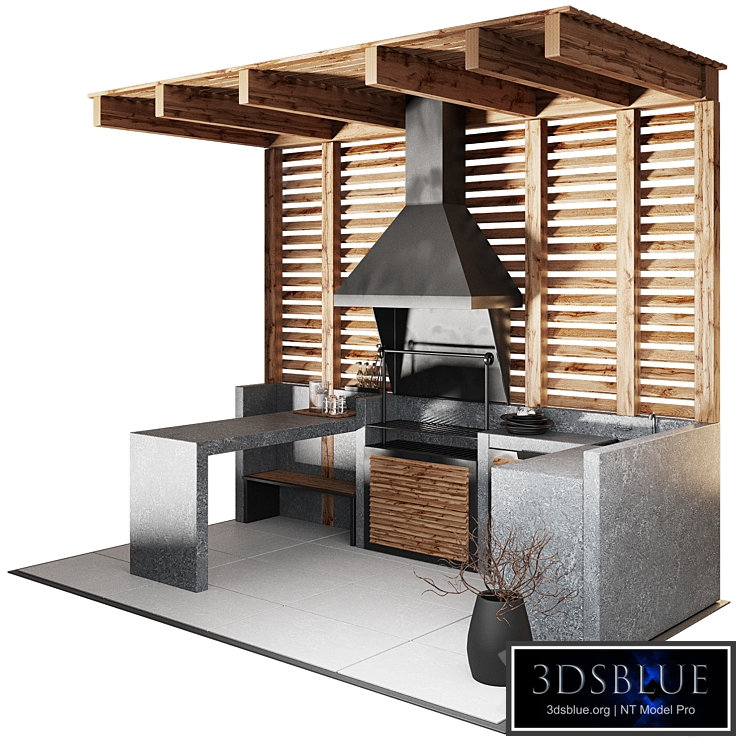 The archive contains the files MAX(vray), MAX(corona) 2018, FBX(vray) FBX(corona), as well as a text file with a link to the reference. The render was created in Corona 6. The materials in Vray are translated using a converter. For Corona render, it is recommended to install a version not lower than 1.5, since the glossiness of materials is configured with PBR in mind Who works in a V-Ray version lower than 3.1 be careful, in the materials in the BRDF section there is a Microfaset GTR ( GGX ), if your version is older than 3.1, then the BRDF field will be empty. Choose Blinn, Phong or Ward – which is preferable for you The penultimate preview in PNG format on a transparent background can be used to make a collage. Perhaps you were looking for: barbecue, street zoning, glass dishes, cutting board, bar counter, bar, barbecue area, barbecue, outdoor kitchen, outdoor recreation area, wooden ceiling, wooden roof, stone tiles, paving stones, maf, natural stone countertop, sink, jar, cans for bulk, slats, wall panel with slats, black furniture, loft, louver doors, bonfire, Fire bowl , kitchen utensils, landscaping, vase with a twig, bonfire, firewood, bench