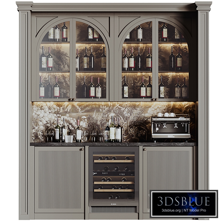 Bar cabinet for a restaurant and home 01 Corona version 9 Materials CoronaLegacyMtl + Vray In versions of CoronaRender 9 and below CoronaLegacyMtl=CoronaMtl CoronaLegacyMtl requires a version of Corona Renderer at least 1.5, since the cards are designed to use PBR 3dsMax 2016 + obj Polys: 687742 Verts: 702080 High Quality models Detailed enough for close up renders
