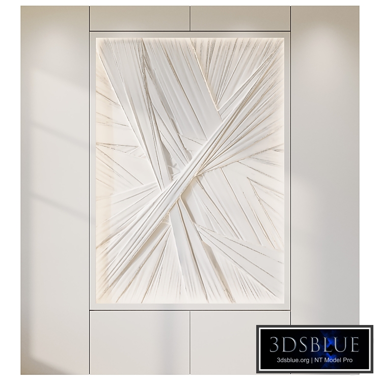 Decorative 3D panel - bas-relief drapery 3D panel with artistic relief imitating complex fabric drapery in geometric design. The model is made in a modern minimalist style, emphasized by a snow-white frame and soft built-in lighting. Suitable for interior design in the premium segment: from residential apartments to public spaces - hotels, offices, galleries and waiting areas. the file contains a Low poly variant (plane + displacement) produces the same result as High poly Textures: Tilling scale system, None Real-World Scale • in the archive: •3ds max 2015 - corona •3ds max 2015 - Vray •FBX - corona •FBX - Vray •FBX - Standard