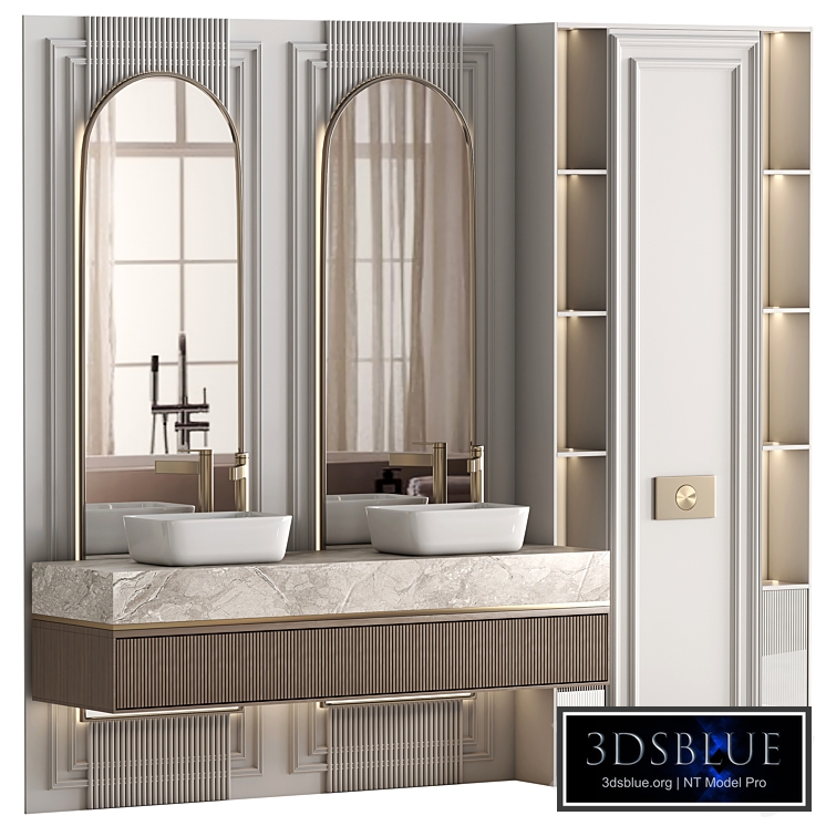 Name: Bathroom furniture N052 in Neoclassic and Modern style ——————————————— 2 color from collection, You just need to select the material and connect it to the body color of the poly object. ——————————————— 3Dsmax 2013 (Vray + Corona) + OBJ Units: Centimeters Poly: 86879 Verts: 90570 Preset: 3DD/3DSKY ——————————————— Corner furniture composition for toilet and bathroom: Suitable for interiors: Scandinavian, minimalism, Japandi, wabi-sabi - custom-made furniture (pedestal, cabinet for installation, shelving behind a glass door), - straight mirror with lighting, - tabletop washbasin Kirovit Olympia 56, - Gessi Flessa mixer. ——————————————— Check out our other models. HAVE A GOOD RENDER :) ——————————————— Other Models: http://3dsky.org/users/3d_artistAhmadnejad