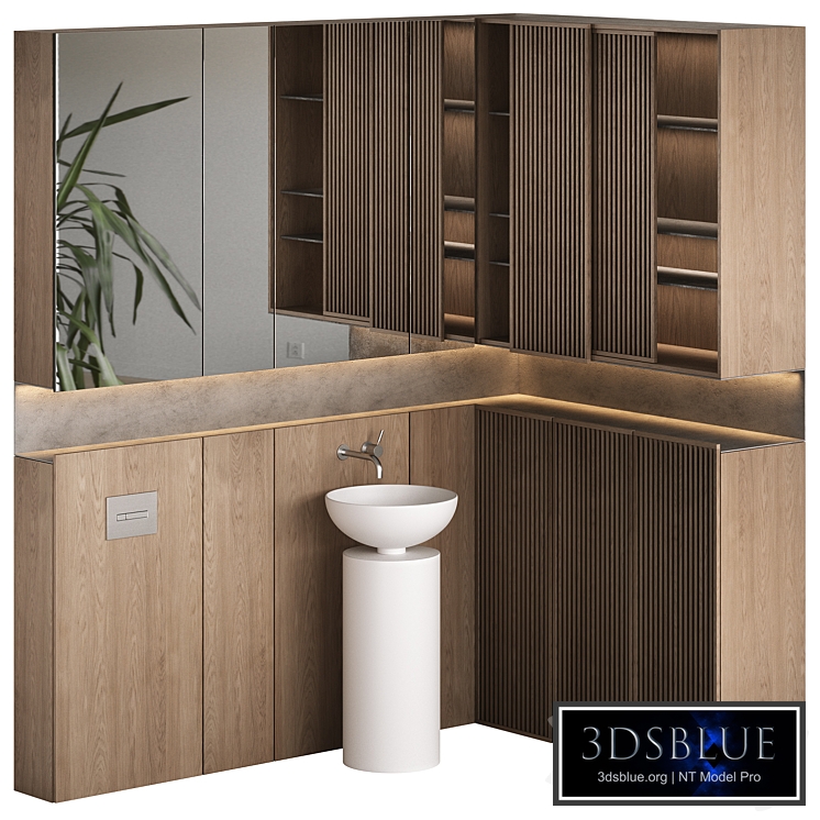 Bathroom furniture set: Cabinets, veneered fronts, wall cabinet with mirrored fronts, slatted sliding fronts, lighting, concrete shelf, Saba 45 Noorth floor-standing washbasin with base, built-in mixer and flush button in brushed chrome. *In the max file, furniture (floor and wall cabinets, shelf) is combined into a group. **In export files, furniture (floor and wall cabinets, shelf) is a single object. ***There are no light sources in the export files according to the model acceptance rules. Floor standing washbasin Saba 45 https://noorth.it/en/products/washbasins/saba/