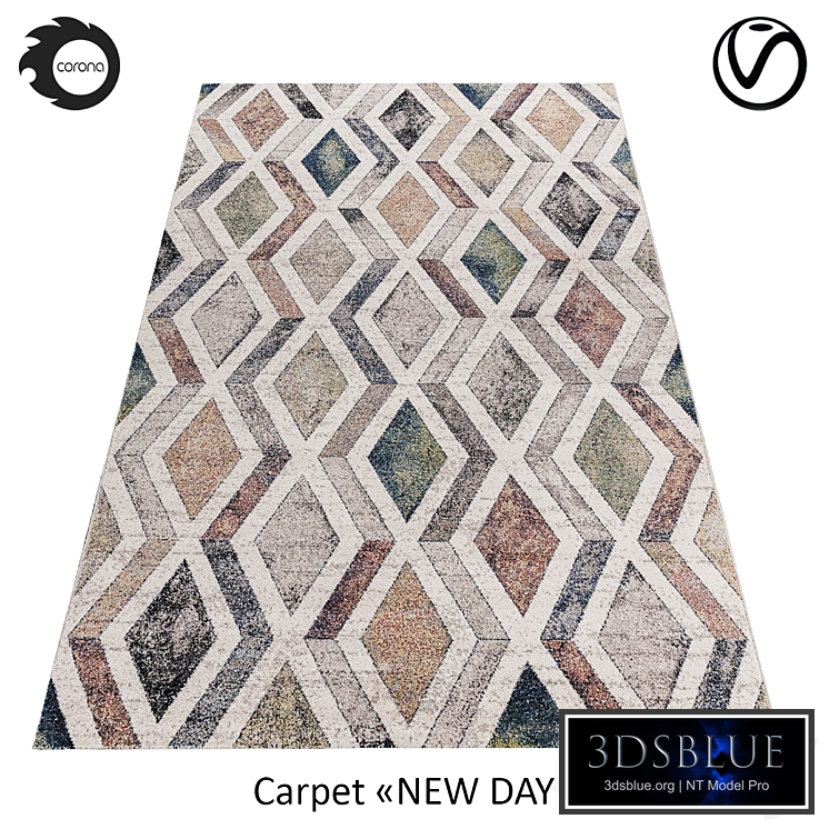 Decorative carpets NEW DAY are woven from polypropylene using new technologies. This material is hypoallergenic, unpretentious in maintenance and democratic in cost. Therefore, the collection has an excellent price / quality ratio. Among the designs, the most relevant and trendy are abstract and geometric patterns that are universal for any style. In the palette of the collection, muted "background" colors are combined with bright blotches of blue, coral, emerald and gold. Thanks to this design solution, you can complement the interior of any color scheme and place attractive accents. The unobtrusive warm design of NEW DAY carpets is best suited to a modern interior. European, Scandinavian or Mediterranean style will look even more harmonious with any of these rugs. Collection: NEW DAY Name: ND05-MLT Article: 59371 Carpet dimensions: 1.6 × 2.3m 1.6 × 3m 2 × 2.9m 2.4 × 3m 2.4 × 3.4m “Who works in V-Ray version lower than 3.1, be careful, in the materials in the BRDF section there is Microfaset GTR (GGX), if your version is older than 3.1, then the BRDF field will be empty. Choose Blinn, Phong or Ward - which is preferable for you " "For Corona render, it is recommended to install at least version 1.5, since the glossiness of the materials is adjusted with PBR in mind."