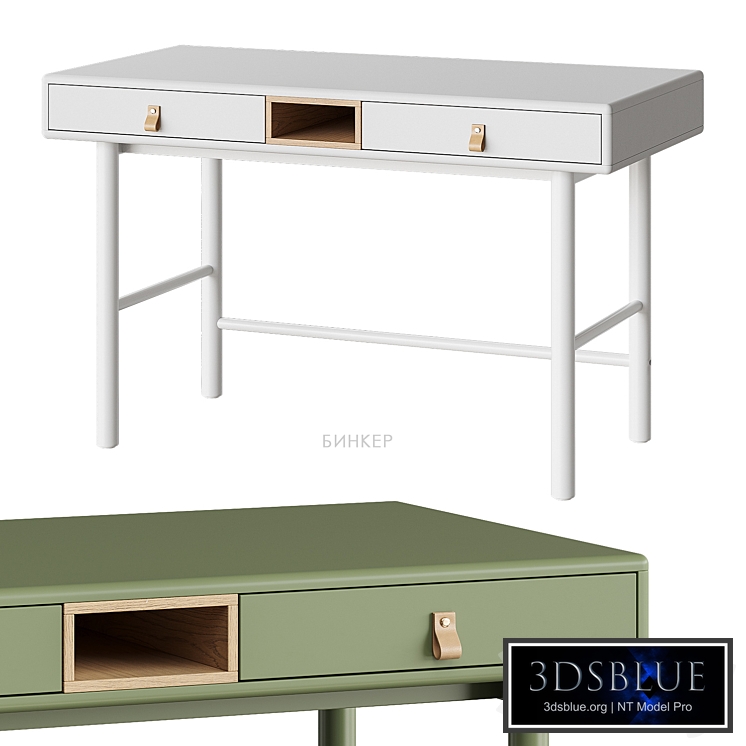 929 Binker Desk Divan.ru Size 120*60*75 cm 5 color options, beige, black, white, burgundy, olive https://www.divan.ru/krasnodar/product/pismennyj-stol-binker-white The model was made in 3dsmax 2019, Corona 4. Saved in 3dsmax 2016, Vray 4 materials were obtained by conversion. In the archive: MAX2016(corona/vray) + OBJ + mtl + Texture 7003 polygons XForm, there is a scan. Pivot is configured. Turbosmooth can be added if necessary desk, scandinavian, work area, workplace, living room, office, metal legs, leather handles, simple desk, open shelf, console, drawer, dressing table, Divan.by, sofa, ru, Divanru, sofa.ru, sofaru