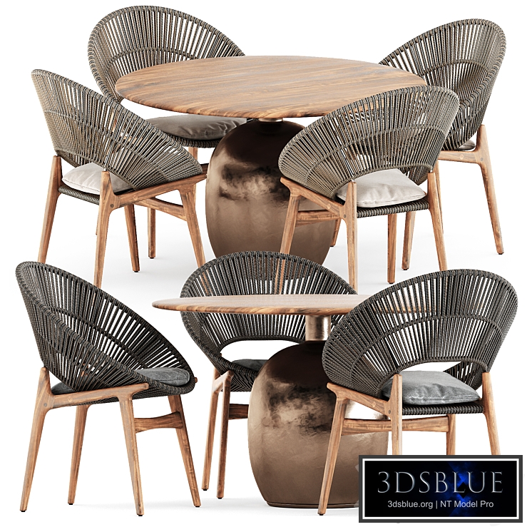 Bora dining chairs and Kasha table by Gloster Bora dining chairs by Gloster https://www.gloster.com/en-gb/products/collections/bora/bora-dining-chair-3045/Fife%20Canvas%20Grey/Teak Dimensions: W: 70.5 cm x D: 63.5 cm x H: 88.5 cm Hs: 43.5 cm Kasha table by Gloster https://www.gloster.com/en-gb/products/collections/kasha Dimensions: Diam: 120 cm x H: 74.5 cm