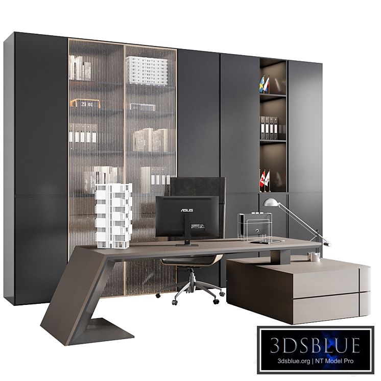 Modern Executive Office Desk with Storage Wall – High Quality 3D Model | 3ds Max + FBX IF you are interested in office furniture models please look at the following link https://3dsky.org/collection/shared/5268386 High-quality 3D model of a modern executive office interior featuring a contemporary office desk, storage drawers, office chair, and a full-height storage wall with shelves and decorative elements. Ideal for office interior visualization, architectural renderings, and corporate workspace projects. Clean geometry, realistic proportions, and professional detailing suitable for close-up renders. Includes Corona Renderer and FBX file formats. high detailed for close up rendering. Vray + Corona + fbx no third party or plugins ------ Polys:449.817 Verts:530.446