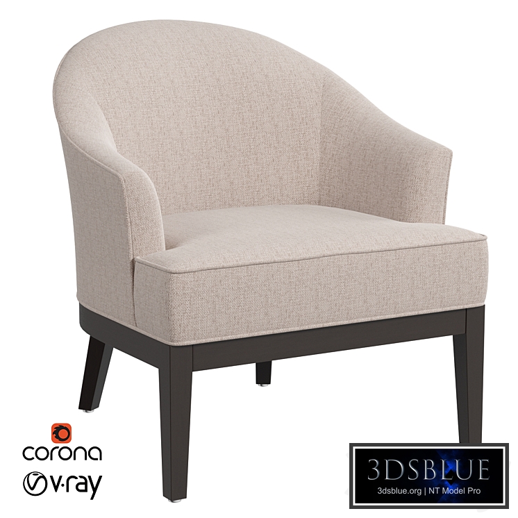 73 x 74 x 83 cm You'll love the retro look of this Brooklyn + Max Kirby Barrel Chair with its fold-out design and flared edges. Linen polyester fabric is easy to clean and available in natural colors of your choice. Solid wood frame, polished to dark brown satin finish.