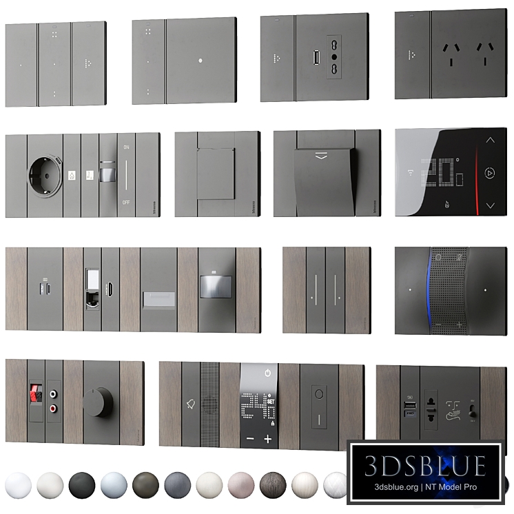Bticino Living Now Dimensions: KA4802 - 102 x 86 x 10 mm KA4803 - 125 x 86 x 10 mm KA4804 - 148 x 86 x 10 mm KA4806 - 192 x 86 x 10 mm KA4802M2 - 174 x 86 x 10 mm KA4802M3 - 245 x 86 x 10 mm KA4802M4 - 316 x 86 x 10 mm Polys: 2612505 Verts: 2744311 Formats: 3ds Max 2014, obj, mtl https://www.bticino.com/products/solution-residential-and-tertiary-building/living-now/features-and-benefits