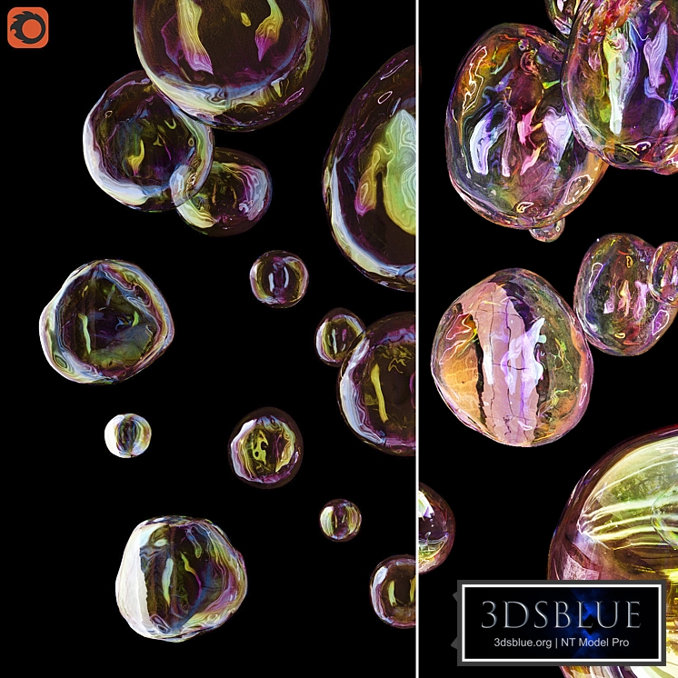 Soap bubbles model. The modifier stack is not collapsed, you can change the geometry to your liking. The material is completely procedural and can be changed too. You can see how the model looks in the scene here: https://3dsky.org/galleries/gallery/pink_rabbits Enjoy your renders!
