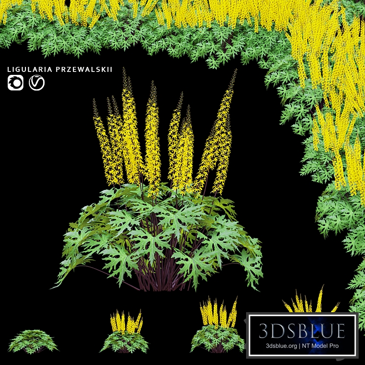 Total Polys 345 808 Verts 470 362 Ligularia_przewalskii_001 Polys: 13,374 Size: X: 117 cm. Y: 115 cm. Z: 51 cm. Ligularia_przewalskii_002 Polys: 88,748 Size: X: 112 cm. Y: 113 cm Z: 96 cm Ligularia_przewalskii_003 Polys: 115611 Size: X: 126 cm. Y: 123 cm. Z: 125 cm. Ligularia_przewalskii_004 Polys: 128 075 Size: X: 122 cm. Y: 126 cm Z: 149 cm In the archive: 3ds max 2012 3ds max 2012 Corona OBJ(by material) FBX vray 2009 V-ray mat Corona mat Textures Happy using!
