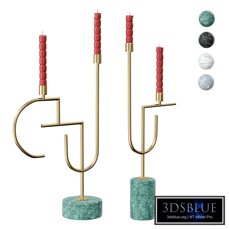 Golden candlesticks on a marble stand. Color: malachite, white marble, dark gray and with a blue tint. Dimensions (including candles) left: width - 29cm, depth - 11cm, height - 57cm right - width - 20cm, depth - 7.5cm, height - 60cm In the archive: MAX2015(Corona) + FBX+ Texture Number of polygons: 20 120 Number of vertices: 20,040 Unit of measurement: millimeters
