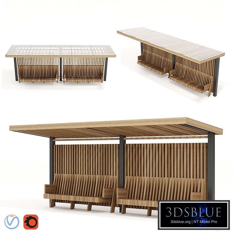 Wooden shed with glass roof and benches. W 620cm D 200cm H 260cm Faces: 6716 Verts: 6280 Vray: 4.20.00. Who works in V-Ray version lower than 3.1, be careful, in the materials in the BRDF section there is Microfaset GTR (GGX), if your version is older than 3.1, then the BRDF field will be empty. Choose Blinn, Phong or Ward - which is preferable for you. Corona 6.0. For Corona render, it is recommended to install a version not lower than 1.5, since the glossiness of the materials is adjusted taking into account PBR. 3dsMax2016 + fbx and textures files included.