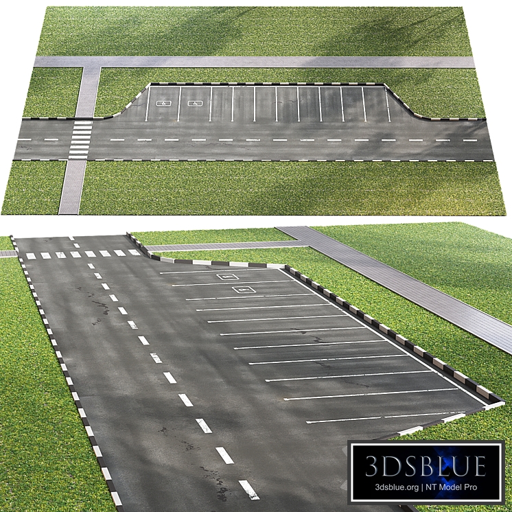 • Car parking for 10 cars, including 2 cars for the disabled; • Grass set up with CoronaScatter. Grass distribution uses the PerSquare parameter, which allows it to automatically adapt to your landscaping area. The archive contains CoronaScatter settings. •Marking done with Corona Distance in Asphalt material. An object called Helper is selected as markup. You can change the markup by changing the geometry of the Helper object; • On asphalt, UVW Map is not folded; • The size of the parking space for the disabled is 3.6 x 6.0 m. The size of a standard parking space is 2.5 x 6.0 m; •In Obj only geometry.