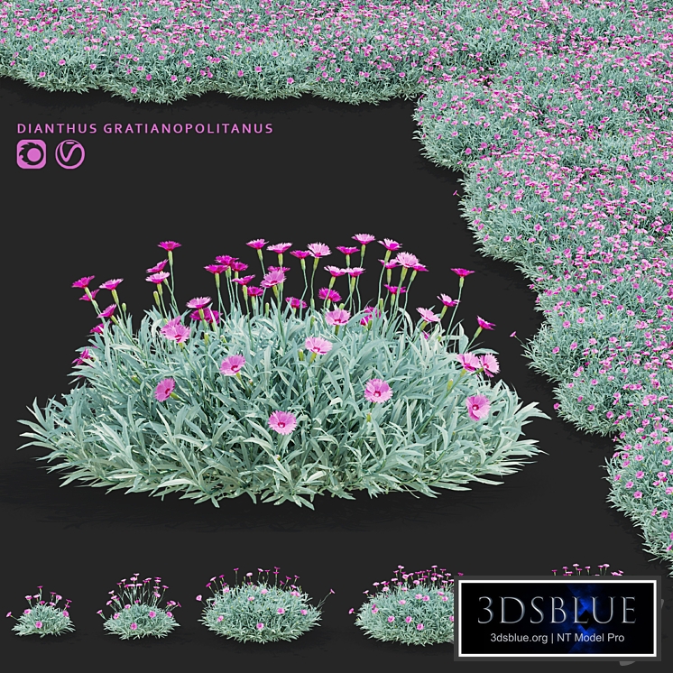 Total Polys 342 003 Verts 510 717 Dianthus_gratianopolitanus_001 Polys: 10,842 Size: X: 32 cm. Y: 31 cm. Z: 21 cm. Dianthus_gratianopolitanus_002 Polys: 19,377 Size: X: 39 cm. Y: 37 cm. Z: 26 cm. Dianthus_gratianopolitanus_003 Polys: 104536 Size: X: 64 cm. Y: 64 cm. Z: 30 cm. Dianthus_gratianopolitanus_004 Polys: 102,574 Size: X: 67 cm. Y: 67 cm. Z: 30 cm. Dianthus_gratianopolitanus_005 Polys: 104 704 Size: X: 67 cm. Y: 69 cm. Z: 30 cm. Archive include: 3ds max 2012 3ds max 2012 Corona OBJ by material FBX 2009 standard material V-ray mat Corona mat Textures Have a nice use!