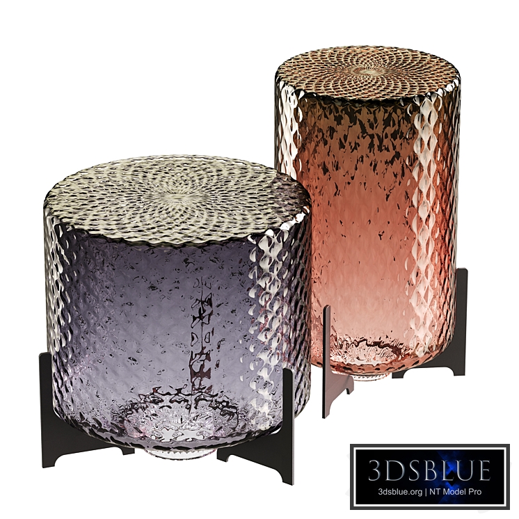 Cattelan Italia Dodo Design: Oriano Favaretto Coffee table with structure in artistic decorated fumé glass. Base in bronze embossed lacquered steel. Dimensions: ø30x53h - A ø41,5x44h - B