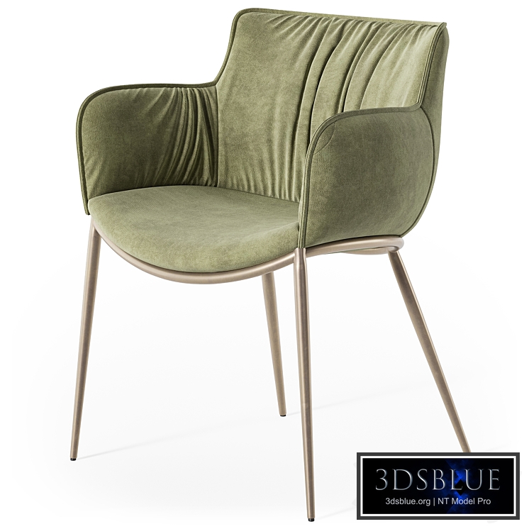Chair with metal frame. Cover in fabric, micro nubuck, soft leather or synthetic leather as per sample card. The cover is not removable. The rounded Rhonda armchair has a natural elegance that makes it perfect for furnishing a comfortable and welcoming design dining room. The soft folds that decorate the inside of the backrest contrast with the stretched frame that wraps around the body. This dining chair with armrests is available in different variants. Design: Luca Signoretti Polys: 108417 Verts: 94 073