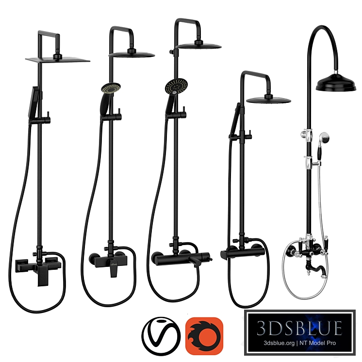 This set includes: 1. Shower column with shower mixer, overhead and hand shower - CEZARES PORTA-CD-NOP; 2. Shower column - Cezares Nautic CD NOP; 3. Shower column with bath mixer - CEZARES CZR-B-CVD-NOP; 4. Shower column GLAM-CD-NOP; 5. SHOWER COLUMN WITH MIXER WITH ROTARY SPRAY, UPPER AND MANUAL - CEZARES FIRST-CVDF-NLC; Models are made for smoothing Vray version 3.20.03 Corona version 1.7 Polys: 411951 Verts: 449192 Stage organization: - all objects are named in the scene; - the real size of the world (system blocks - mm); - all previews are rendered in 3ds max Vray; - the model is completely ready to use visualization in 3ds max + Vray + Corona.