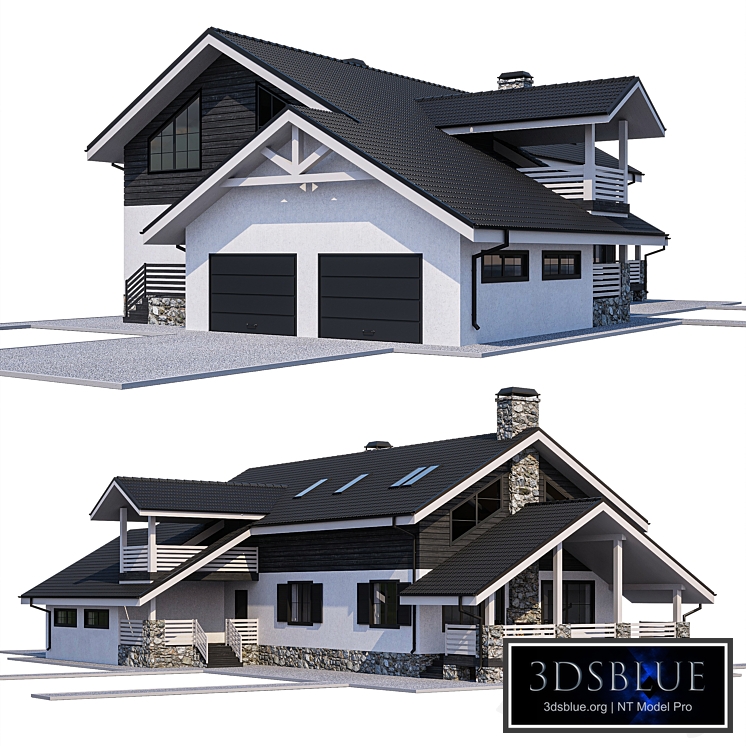 Huge chalet style house with fireplace on the terrace and two garages. The roof is made of metal tiles (made by geometry). House dimensions: 15.7 mx 25.5 m House height - 10 m Polys: 892 755 Verts: 644 267