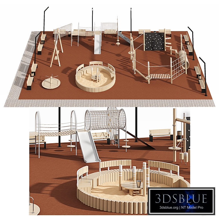 A modern children's playground consisting of many different elements for different age groups. Corona 9 version The model uses materials that may not display correctly in very old versions of the engine Materials CoronaLegacyMtl + Vray Vray materials obtained using Vray-converter Textures and materials have logical names Polys: 248 624