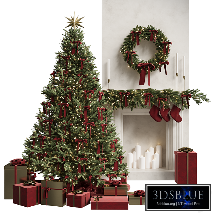 New Year's set: Christmas tree, Christmas wreath, fireplace, gifts, decorations. Polys: 793,944 Verts: 1,032,034 Render: Corona (9) CoronaLegacyMtl materials may not display correctly in very old engine versions.
