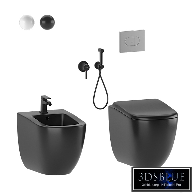 Floor standing toilet / bidet Cielo Fluid. Model dimensions: 370x530x415 (Model under anti-aliasing) The model also includes: - Flush button (for toilet) Grohe Arena Cosmopolitan -Hygienic shower Kludi and bidet mixer Omnires Parma. (Materials are on the spheres. Select the material you need with a pipette and put it on the object or objects)