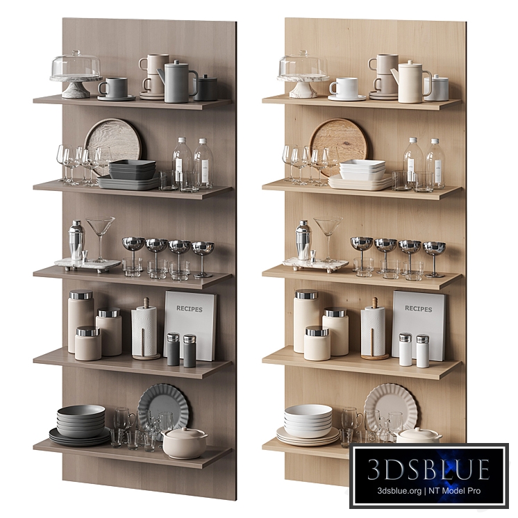 1003 Shelf Filling Set NG6 the width of the shelves is approximately 80 cm The file has two sets: dark and light. Zara Home Tableware The set is suitable for table setting in a cafe, restaurant, home, holiday, wedding, snack bar, breakfast, lunch, dinner, cutlery, aesthetics, etiquette, filling shelves, racks, in the kitchen, dining room, living room, serving, dishes, utensils, plates, glasses, mug, cup, stack of plates, decanter, wine glass, shaker, candles, kitchen towels In the archive: MAX2016(corona/vray) + OBJ + Texture + mtl 89760 polygons total, one set 44880 polygons XForm, there is a scan. Pivot is configured. The dishes are grouped on shelves for convenient placement. Turbosmooth is thrown on (in viewport - 0 iterations, on render - 1 iteration). In OBJ, the stack is collapsed.