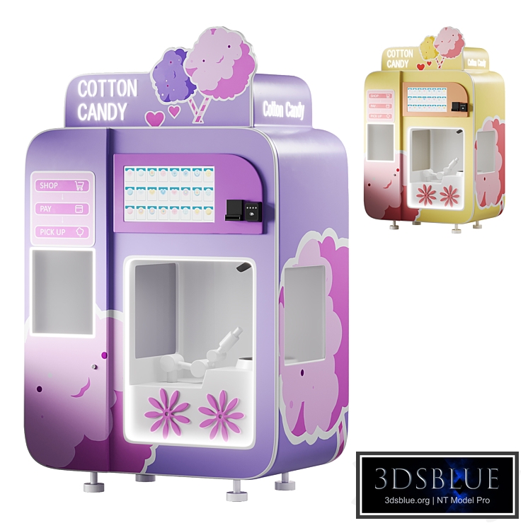 Cotton Candy Vending Machine H.218cm * W.135cm * D.76cm https://xinyongyong.en.alibaba.com/productgrouplist-945533067/Cotton_Candy_Vending_Machine.html?spm=a2700.shop_index.74.2.3de42520zaFBGo CoronaLegacyMtl + Vray Materials The TurboSmooth modifier is applied to the model during rendering Polys:22,212 Verts:22,562 (without TurboSmooth) For Corona render, it is recommended to install version no lower than 1.5, since the glossiness of materials is configured taking into account PBR Those who work in V-Ray version lower than 3.1, be careful, in the materials in the BRDF section there is Microfaset GTR (GGX), if your version is older than 3.1, then the BRDF field will be empty. Select Blinn, Phong or Ward - what is preferable for you