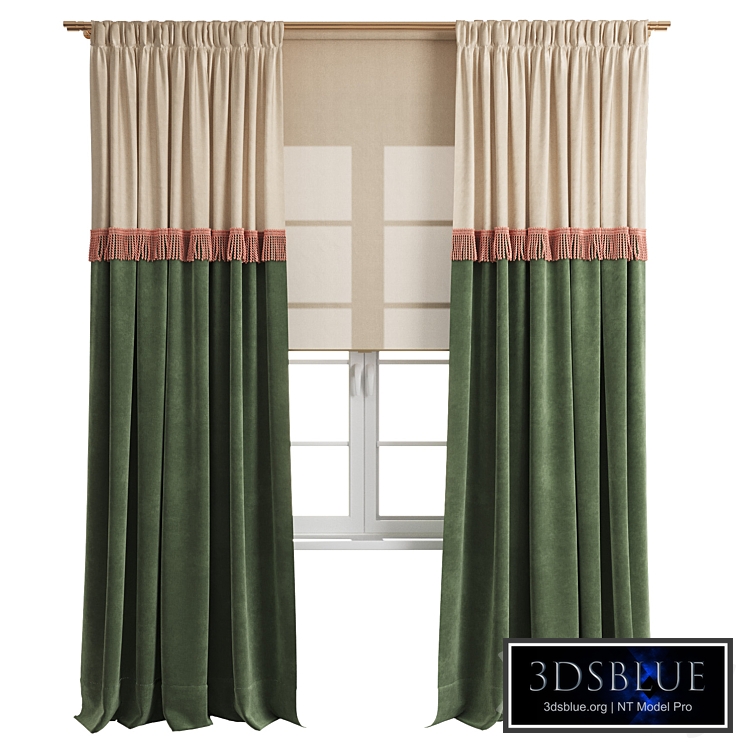 Two-tone curtains with fringe The fringe is made with geometry, TurboSmooth modifier is applied (render iters -1) Model polygonality without smoothing modifier applied - 572,478 polygons With turbosmooth active - 1,922,130 Render: Corona (9) CoronaLegacyMtl materials may not display correctly in very old engine versions