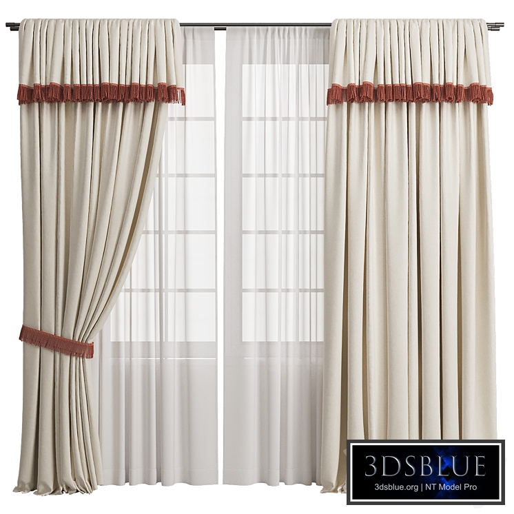 Light curtains with fringe, straight and with a tie-back The colors of the curtains and fringe can be easily changed in the material settings The fringe is made using geometry and a TurboSmooth modifier is applied (render iters -1) Render: Corona (9) CoronaLegacyMtl materials may not display correctly in very old engine versions.
