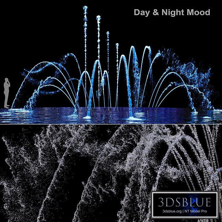 _Dancing Fountains For Day and Night Moods, _21 High-resolution Fountains For close-up renders _You can apply Two Different Materials for each fountain _You can move the Fountains around and form any Figure