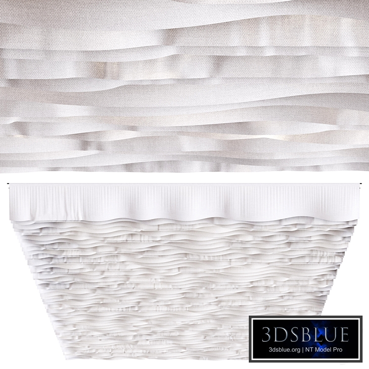 Decorative ceiling made of longitudinal strips of fabric. There are no light sources in the file. File format: - 3ds Max 20 corona render - 3ds Max 20 vray - OBJ For Corona render, it is recommended to install version not lower than 1.5, since the glossiness of materials is configured taking into account PBR.