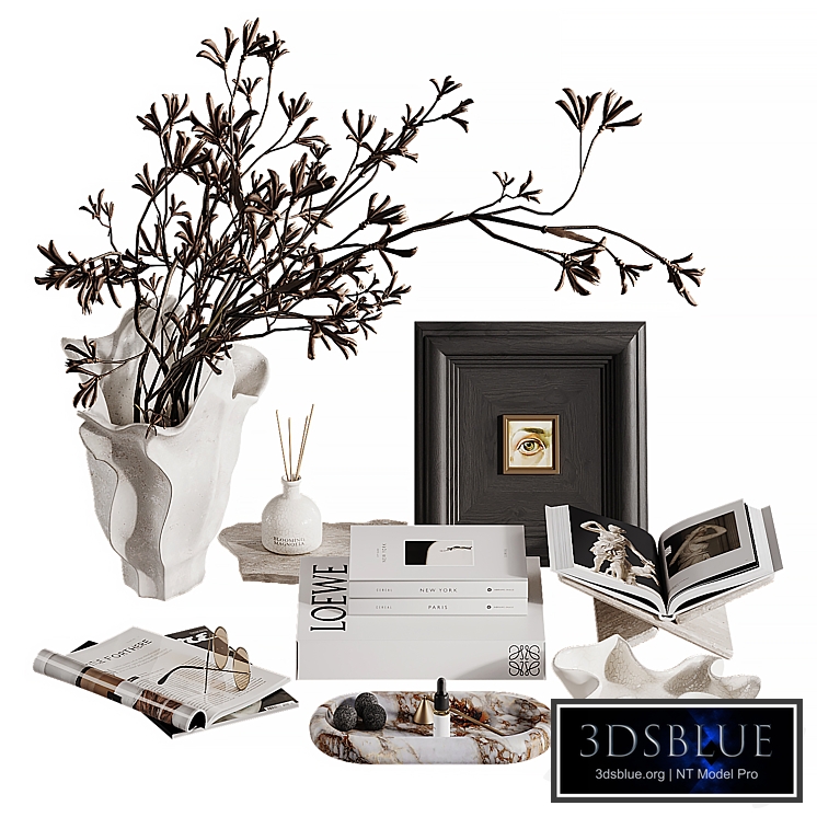 Decorative set White: Kangaroo branches Ceramic vase YQYSY-2309060-B https://market.yandex.ru/cc/6ttAQW Tray LO Oval - Calacatta Viola https://eternahome.ru/product/podnos-lo-oval-calacatta-viola Book holder https://www.anthropologie.com/anthrohome/shop/hybrid/marble-book-holder?color=010&quantity=1&size=One+Size&type=STANDARD Vase Unnr No.01 https://xirix.com.au/products/unnr-no-01 Corona version 9 CoronaLegacyMtl + Vray Materials In CoronaRender 6 and below CoronaLegacyMtl=CoronaMtl Textures and materials have logical names Vray materials are obtained by conversion