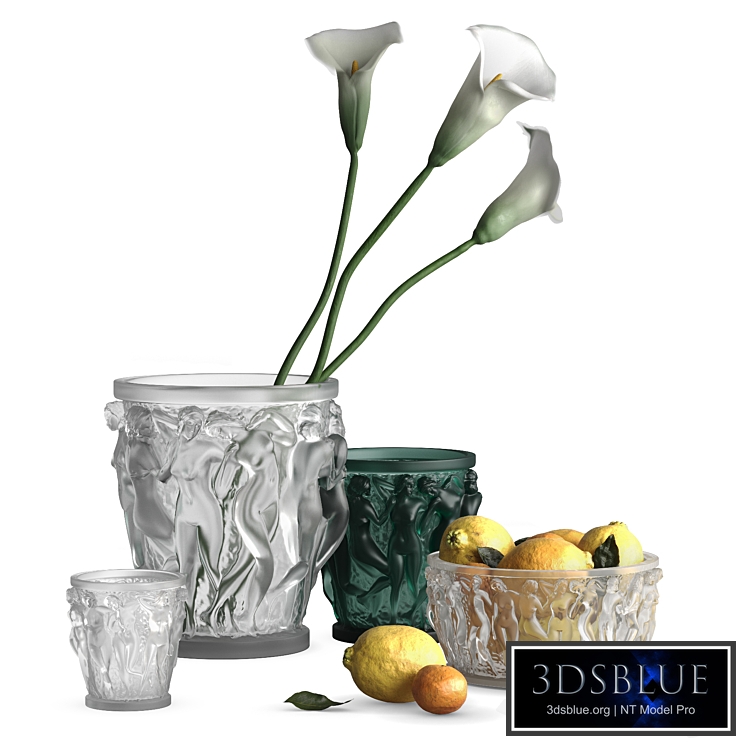 Decorative set with vases and dish Lalique Bacchantes with lemons and calla lilies