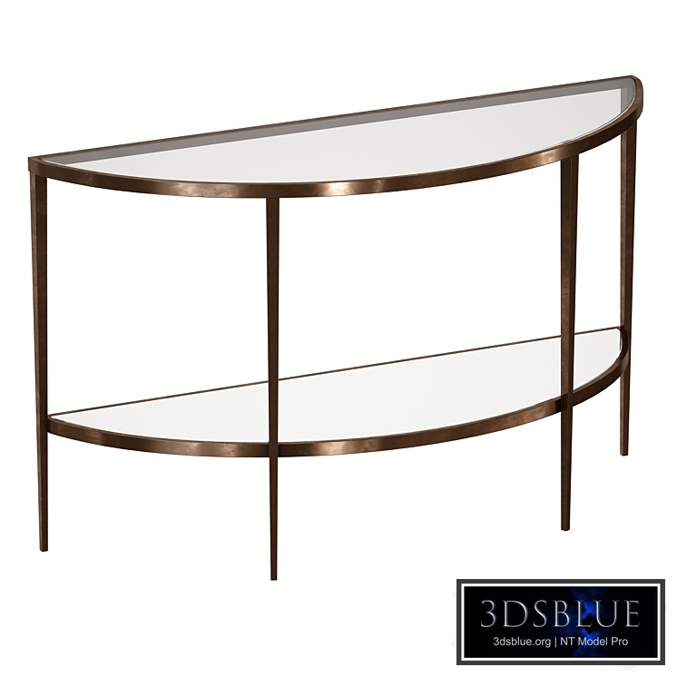 Semicircular, oval console table in Art Deco style. Metal base in warm bronze shades, frames the table top in clear glass. The bottom shelf is made of mirror. Seller Description: The refined elegance of Art Deco lightens the room with an heirloom look straight from the 1920s. Clean tapered lines reflect warmth with textured metallic tones framing clear and mirrored glass. Overall Dimensions Width: 17 "Depth: 50" Height: 30.25 " The archive contains: all textures files with materials for Vray, Corona, Fstorm additional OBJ and FBX formats Number of polygons: 4966 Number of Vertices: 5063 Who works in V-Ray version lower than 3.1, be careful, in the materials in the BRDF section there is Microfaset GTR (GGX), if your version is older than 3.1, then the BRDF field will be empty. Choose Blinn, Phong or Ward - which is preferable for you.