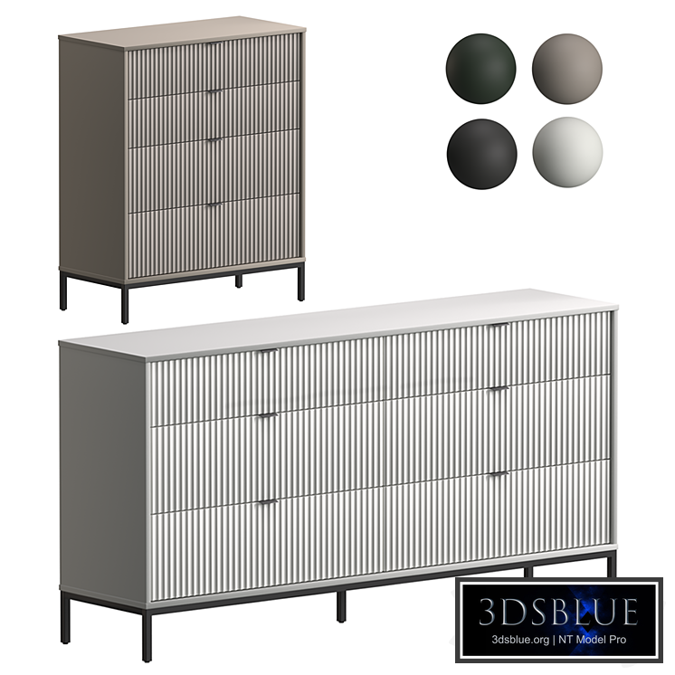 Dresser Travis-1 and Travis-2 Divan.ru set1 Divan.ru 4 color options: Forest (green), Grafit (gray), Milk (white), Santiago (beige) Dresser Travis-1 Size 84 x 40 x 102 cm https://www.divan.ru/product/komod-trejvis-1-milk Dresser Travis-2 Size 165 x 40 x 85 cm https://www.divan.ru/product/komod-trejvis-2-milk All materials are CoronaLegacyMTL. Vray materials are obtained by conversion. In the archive: .max 2015 (corona/vray), .FBX (corona/vray), .OBJ + mtl, textures 64413 polygons 64600 vertices Dresser Travis-1: 25950 polygons Dresser Travis-2: 38463 polygons The materials are logically named, Pivot is configured, XForm The materials are configured taking into account the PRB pipeline, it is recommended to install the Corona render version at least 1.5 Who works in a V-Ray version lower than 3.1 be careful, in the materials in the BRDF section there is a Microfaset GTR ( GGX ), if your version is older than 3.1, then the BRDF field will be empty. Choose Blinn, Phong or Ward – which is preferable for you