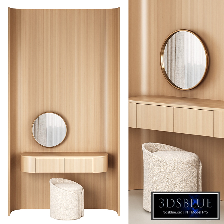 Modern dressing table with mirror table size 1200*450mm Pouf with back 450mm*450mm*490mm https://charmydecor.com/products/white-round-lamb-wool-vanity-stool-with-backrest-rotatable-chassis?variant=44039678427351 Render: Corona (9) CoronaLegacyMtl materials may not display correctly in very old versions of the engine