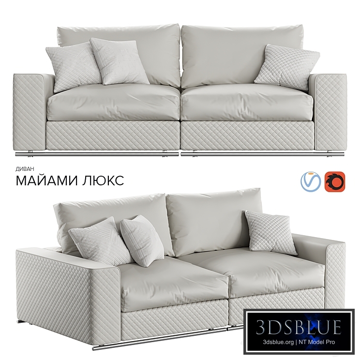 The Miami Lux sofa from the designers of the Aesthetics company can become the center of attraction in the luxurious interior of the living room. Surprisingly soft and comfortable with a large seating depth, it invites the whole family or a large group of friends to sit comfortably. Refined classic shapes, cozy fluffy pillows, an ergonomic cushion on the back make the Miami Lux sofa incredibly attractive. The Miami sofa is made of high quality modern hypoallergenic materials that have been certified for compliance with international safety and environmental standards. The pillow filler does not lose its elasticity even after many years of constant use, while maintaining excellent ergonomics. The upholstery of the Miami Lux sofa is made of durable Italian-made textile material that is easy to clean and does not lose its original presentability for many years. Size: 2400x1220x990mm Polys: 862106 Verts: 445318 Beautiful renders!