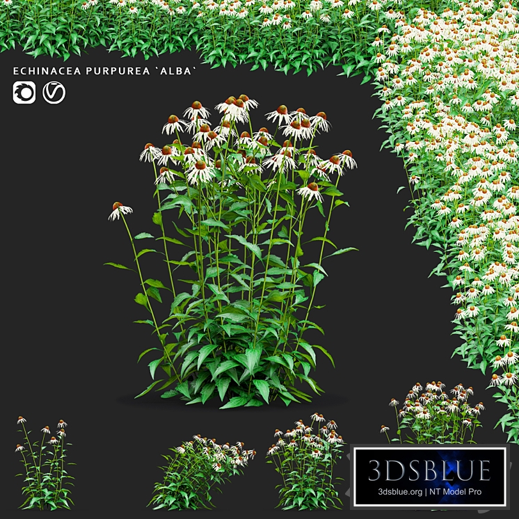 polys:305 048 Verts:498 613 Echinacea_purpurea_alba_001 Polys: 20,960 Size: X: 43 cm. Y: 48 cm Z: 73 cm. Echinacea_purpurea_alba_002 Polys: 79,095 Size: X: 59 cm. Y: 85 cm. Z: 58 cm Echinacea_purpurea_alba_003 Polys: 73,383 Size: X: 59 cm. Y: 64 cm Z: 75 cm. Echinacea_purpurea_alba_004 Polys: 131610 Size: X: 75 cm. Y: 85 cm. Z: 100 cm. In the archive: 3ds max 2012 3ds max 2012 Corona OBJ (by material) FBX VRAY 2009 V-ray mat Corona mat Textures Happy using!