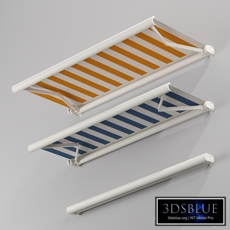 Cassette Awning (Elbow Awning, Cloth Awning, Cassette Awning) Supplied with 3 pcs. of blue and 3 pcs. of orange. Decorate your cottage, mansion or country house. Dimensions: 6000x3100x520 In my profile you can find even more quality models: https://3dsky.org/users/volkodav909
