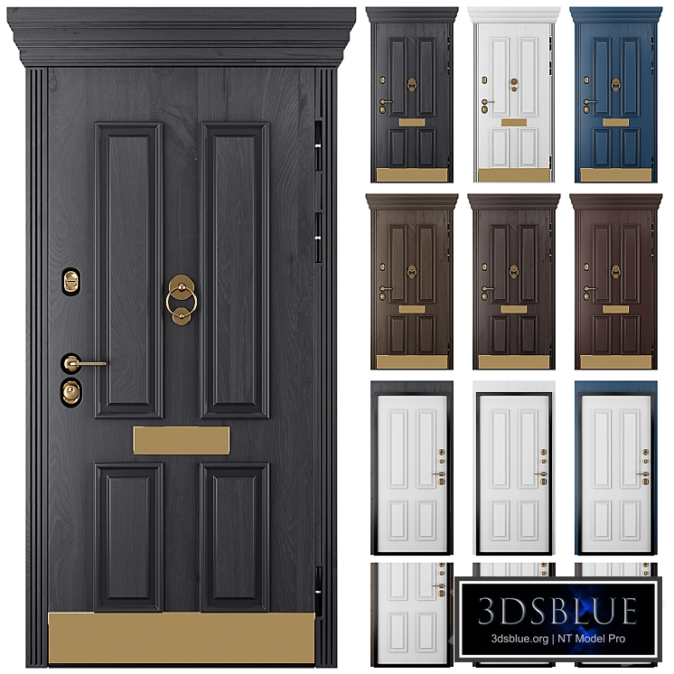 A set that includes 6 entrance doors, made in a classic style, from the company staleks.kz London 7024 (grey) London 9003 (white) London 5009 (blue) London Honey (brown_1) London Brown (brown_2) London 8017 (brown_3)